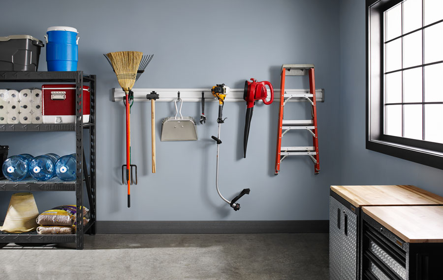 I sistemi a parete consentono di appendere facilmente utensili, attrezzi lunghi e minuteria, rendendoli subito visibili e organizzati.