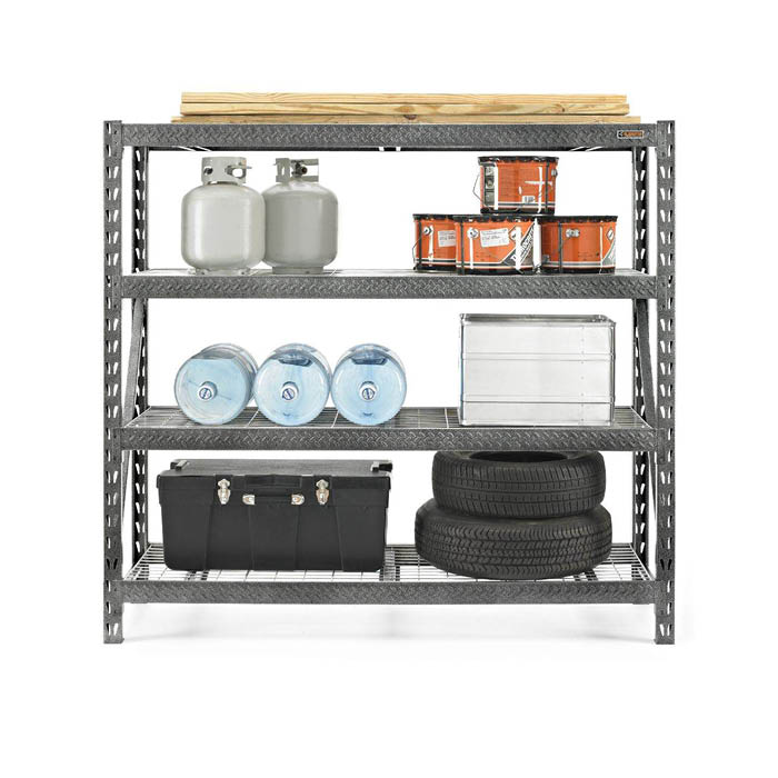 Questa speciale scaffalatura in acciaio Gladiator, è dotata di struttura a incastro. Quindi uno scaffale robusto, e facile da montare, senza bulloni o attrezzatura varia.